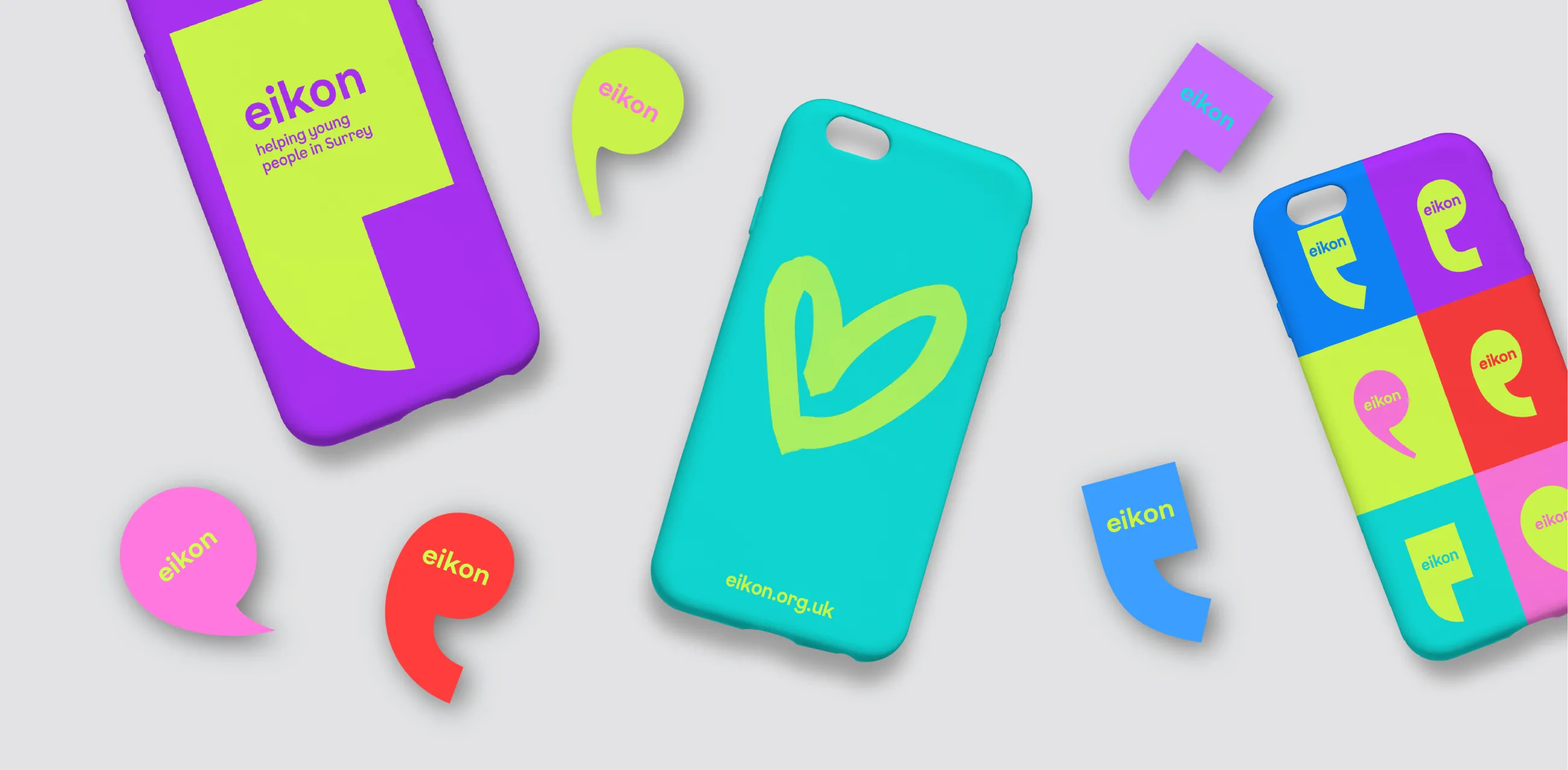 Eikon wanted to create a vibrant new visual identity that better resonated with children and young people. They create a safe space where children and young people can speak out – or to be silent if they need to. This idea of listening to the voices of young people is absolutely central to the brand, so this core brand idea is woven throughout the visual identity and messaging.