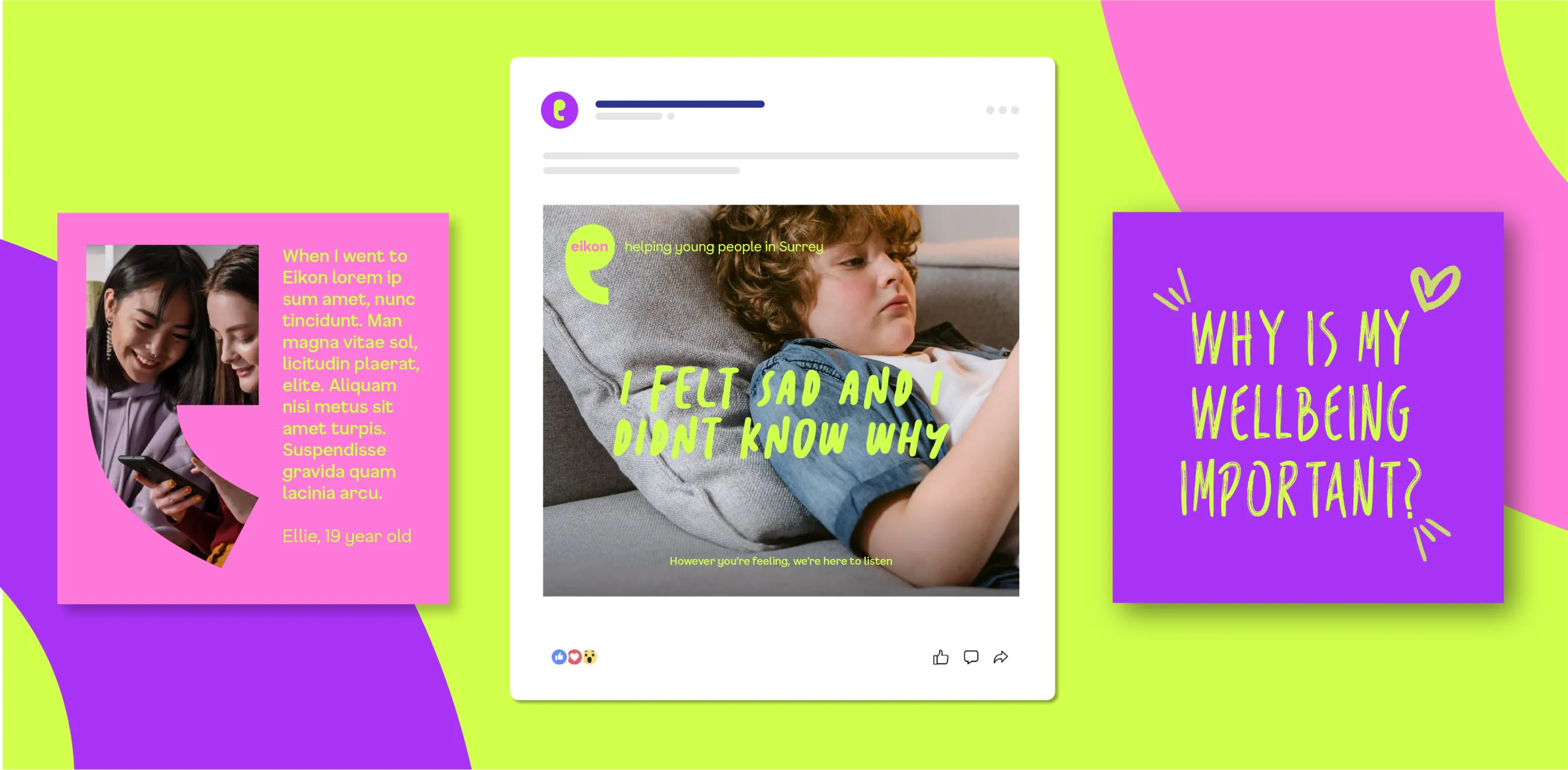 We wanted to build a brand informed by those that Eikon helps directly – the young people themselves. The campaign messages are based on snippets of dialogue from case studies and testimonials, authentically communicating what young people want from Eikon, such as: